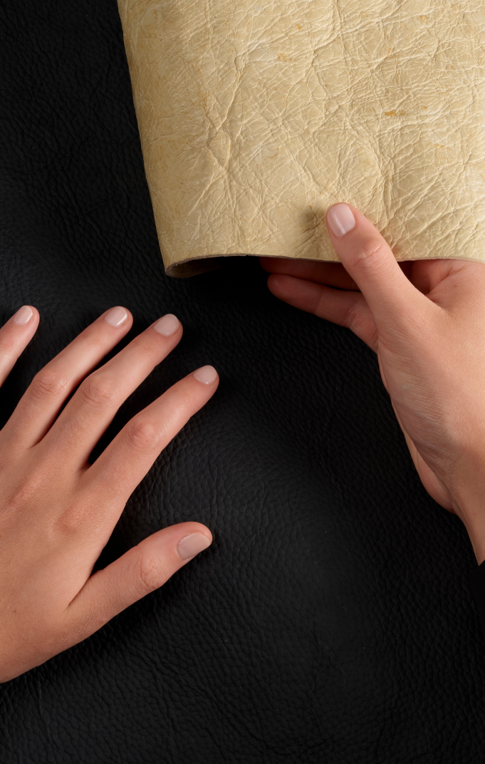 High-performance botanical hides with unique, and naturally grown textures and customizable colors, finishes and thickness for versatile applications.
